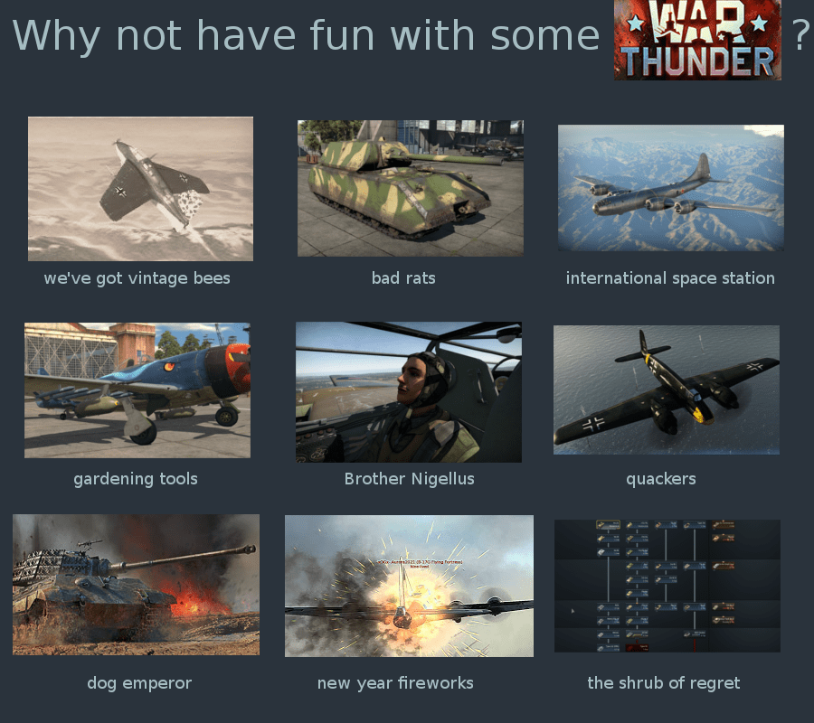 If you discover this site serviceableness, please support us by sharing this posts to your preference social media accounts like Facebook, Instagram and so on or you can also Download this blog page with the title War Thunder Meme Planes by using Ctrl + D for devices a laptop with a Windows operating system or Command + D for laptops with an Apple operating system. If you use a smartphone, you can also use the drawer menu of the browser you are using. Whether it's a Windows, Mac, iOS or Android operating system, you will still be able to bookmark this blog.